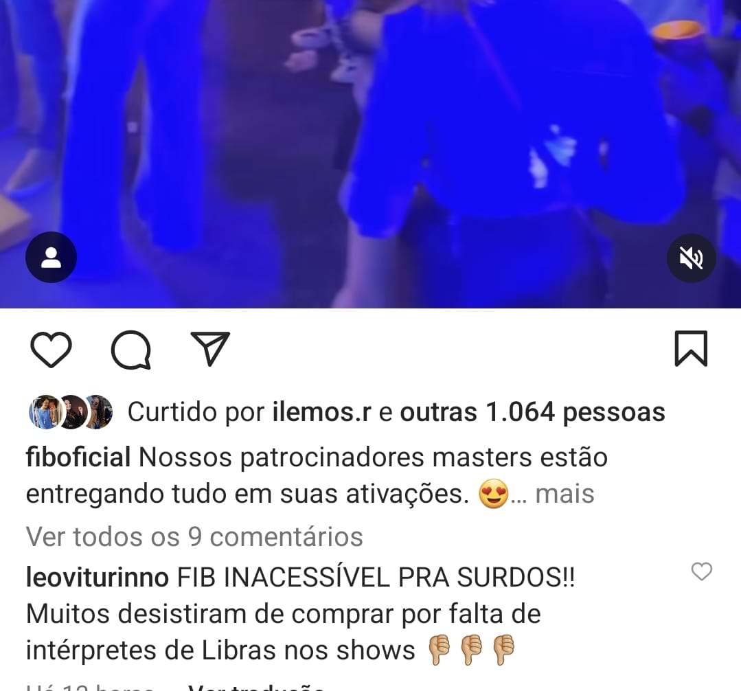 Além disso, nenhuma justificativa foi dada para a recusa. “Entramos em contato com esperança de que o FIB contasse conosco e contratasse intérpretes para nós. Mas recebemos essa negação. É como se eles não se importassem com as pessoas surdas, não tivessem o interesse em nos incluir no evento. É uma sensação de impotência enorme. Ficamos tristes com isso. É muito cansativo ter que correr atrás disso e lutar pelos [nossos] direitos”, afirma Léo.