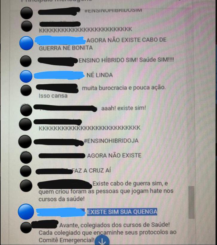 - Mensagens no chat do canal da Uesb no Youtube
