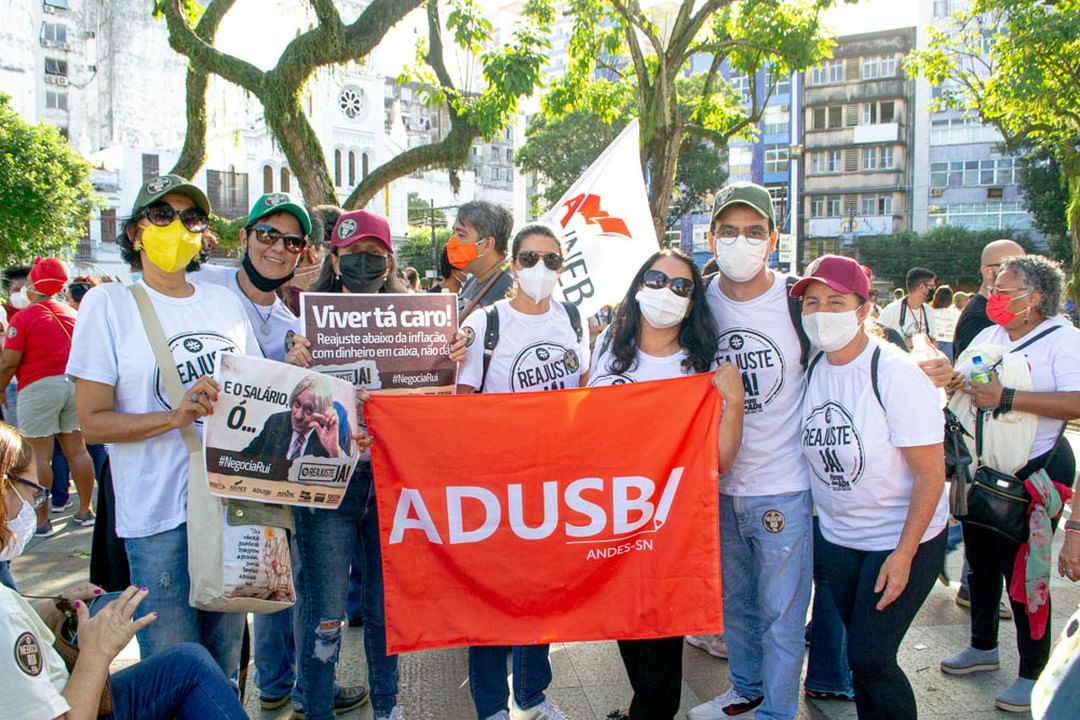 Da Uesb, 20 docentes participaram do ato, que teve muitos discursos dos dirigentes sindicais e faixas com palavras de ordem contra o arrocho salarial. Há sete anos os servidores docentes não recebem um reajuste linear capaz de impedir as perdas salariais provocadas pela inflação. Em janeiro de 2022, o governador Rui Costa deu 4% de reajuste, mas o percentual ficou bem inferior ao acumulado inflacionário do ano passado, que foi de 11%.