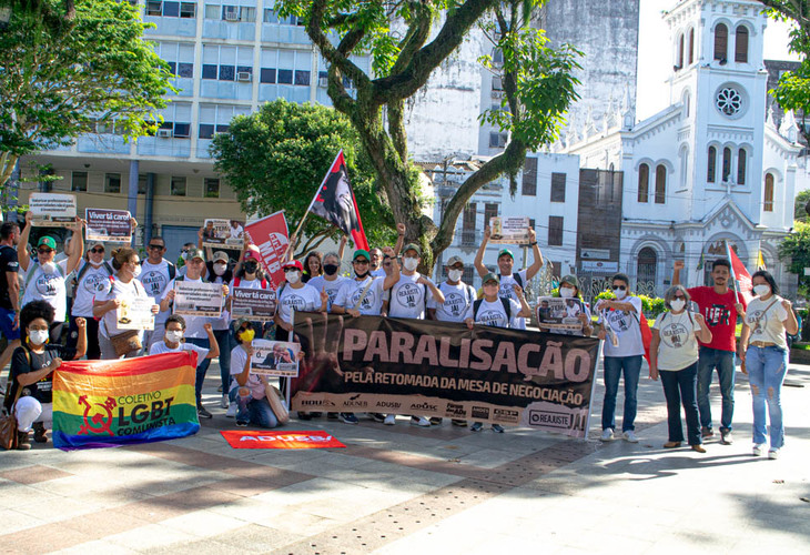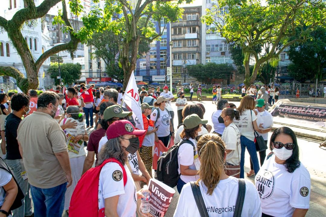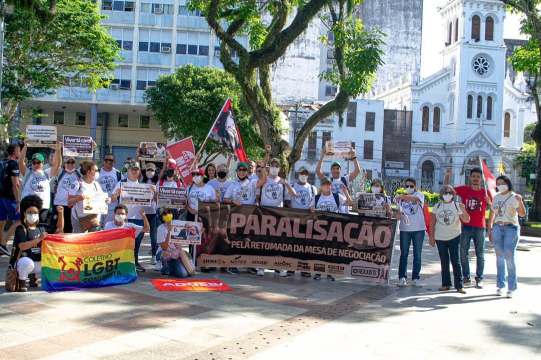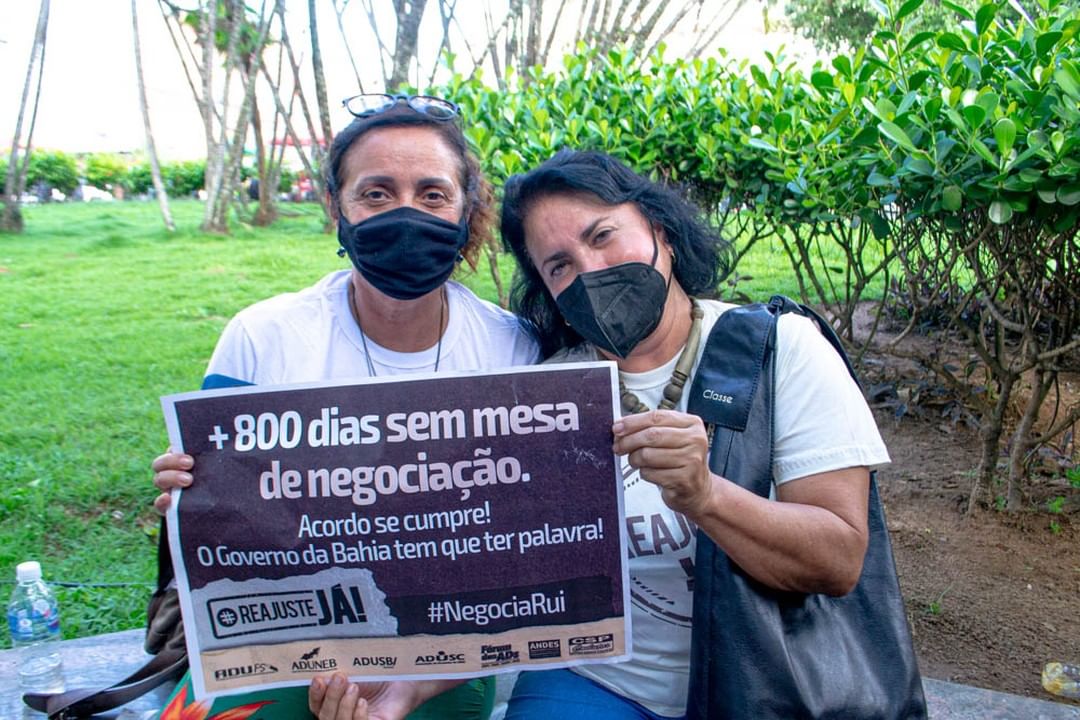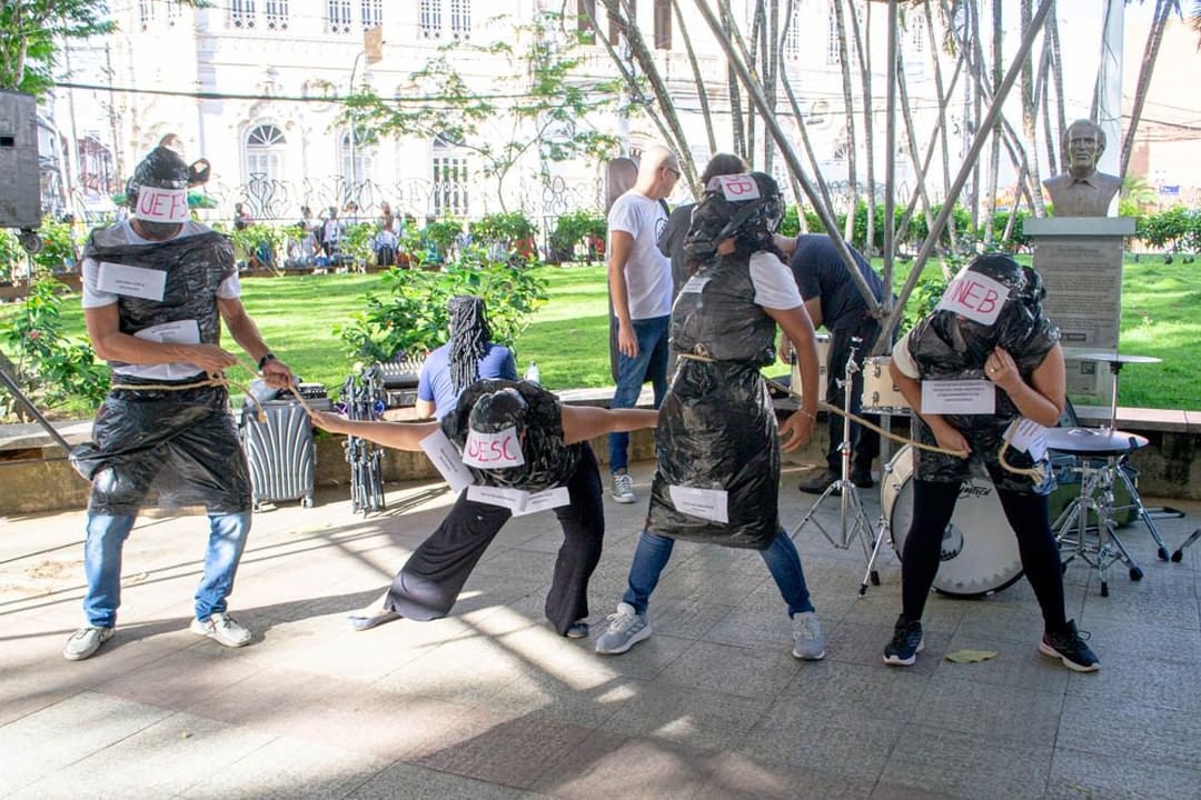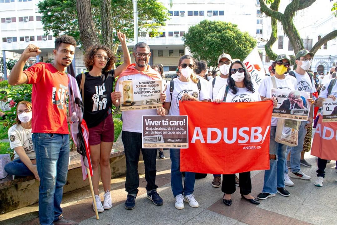 A manifestação docente também aconteceu em Salvador, na Praça da Piedade. Durante um ato em conjunto, os professores das quatro universidades estaduais da Bahia (Ueba) falaram sobre o processo de sucateamento das instituições de ensino superior. Alguns dos problemas relatados foram a falta de investimentos, de concursos públicos, o desrespeito à autonomia universitária e aos direitos trabalhistas, e a política de permanência estudantil precária.
