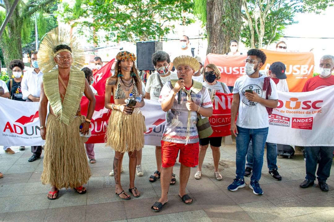 Movimentos sociais estiveram presentes no protesto, em solidariedade aos docentes. O militante do Movimento de Luta nos Bairros, Vilas e Favelas (MLB), Herberson Sonka, denunciou que o Partido dos Trabalhadores (PT) vem adotando nas Ueba uma política “extremamente neoliberal”. O militante comparou o arrocho salarial dos professores e o sucateamento das universidades pelo governo estadual a uma jiboia, “que envolve a universidade e quando se pensa que é um abraço, vai asfixiando, vai tirando o oxigênio, quebrando a coluna dorsal, arrebentando as universidades”. “Nós estamos aqui, enquanto movimento social, para garantir que a luta dessas universidades, sobretudo a luta da Adusb, que é de onde venho, possa resistir”.
