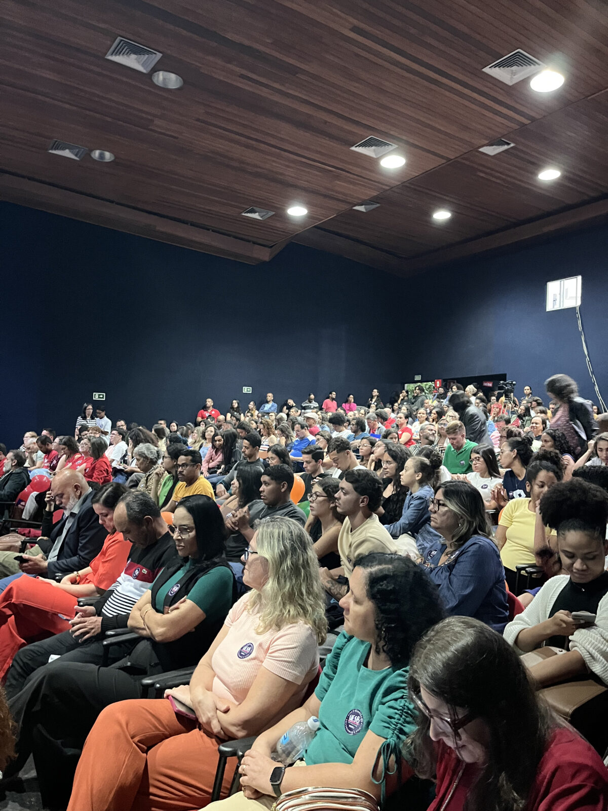 O debate chegou ao fim por volta das 21h40. No lado direito do auditório, os apoiadores da Chapa 2, “Cuidar para Transformar”, contribuíram para esquentar a disputa entre os candidatos, entoando gritos e balançando balões vermelhos e azuis. As torcidas das Chapas 1, “Uesb: Viva e Democrática”, e 3, “Uesb cada vez mais forte”, embora menos volumosas, também se manifestaram com gritos e adesivos estampados nas roupas.