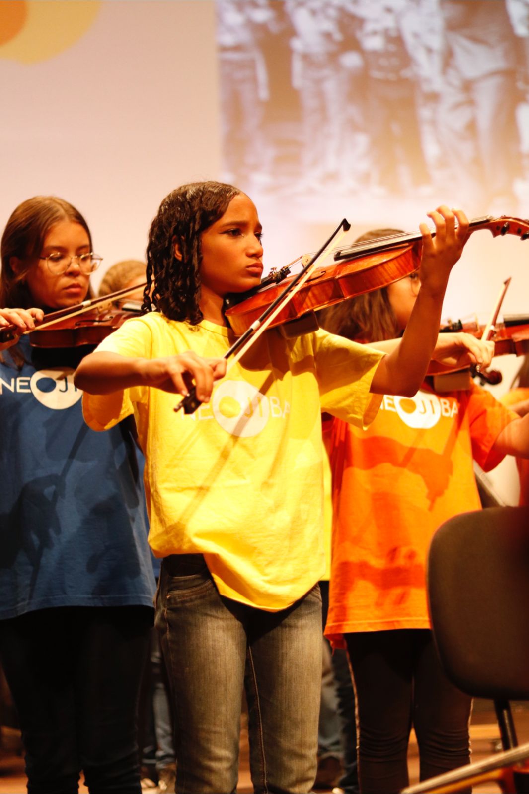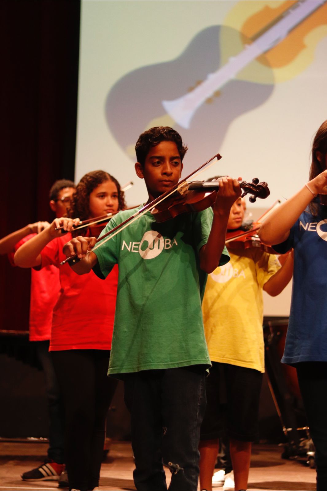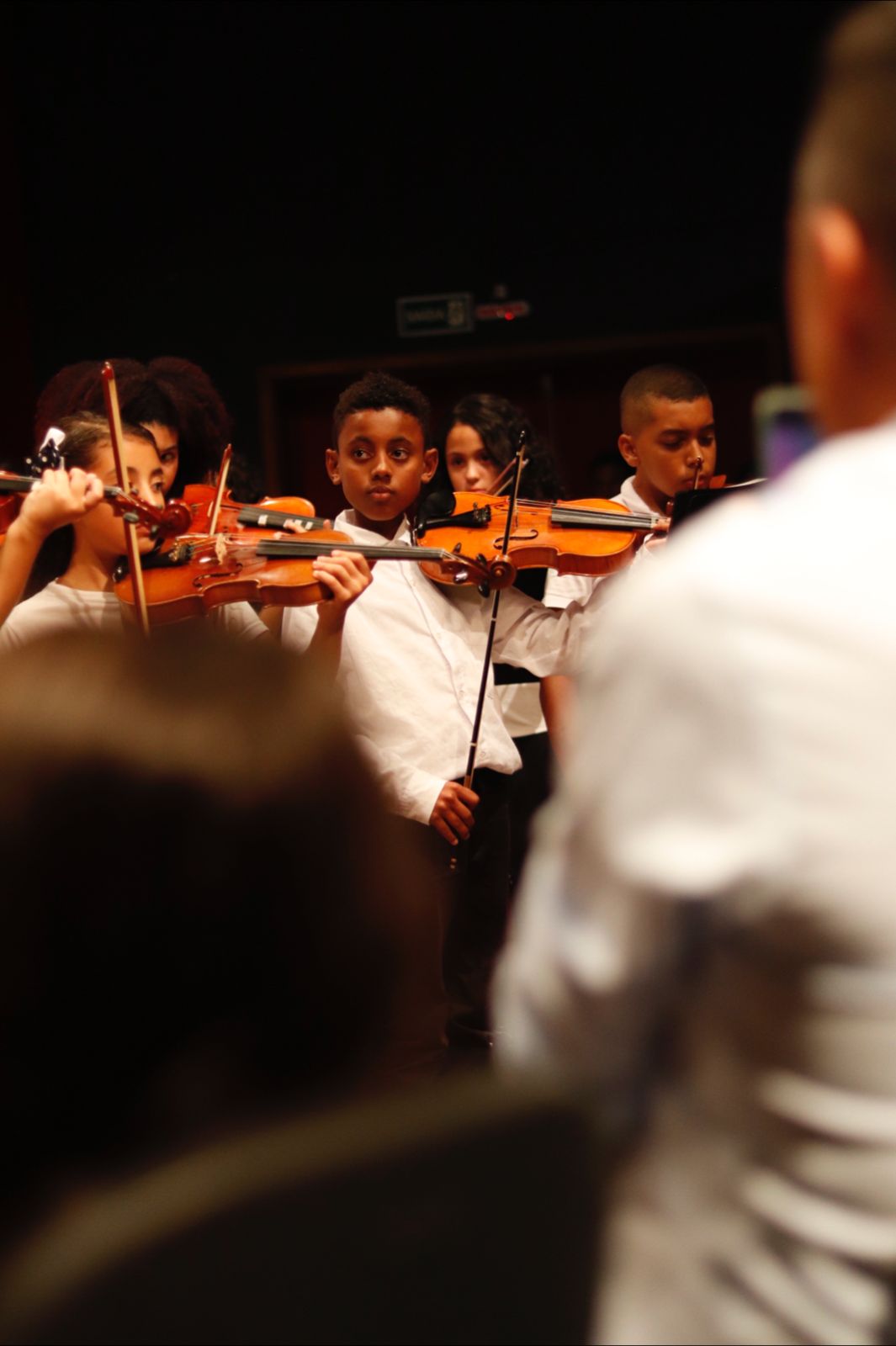 Depois, a turma de iniciação em violino fez sua apresentação no recital. Com os alunos em palco, o professor Ledison Manrique explicou que utiliza com suas turmas iniciais o método de Suzuki, que prega que toda criança pode aprender sobre música da mesma maneira que aprende sua língua materna. Além disso, o método fala sobre o respeito aos mestres, como pais e professores.