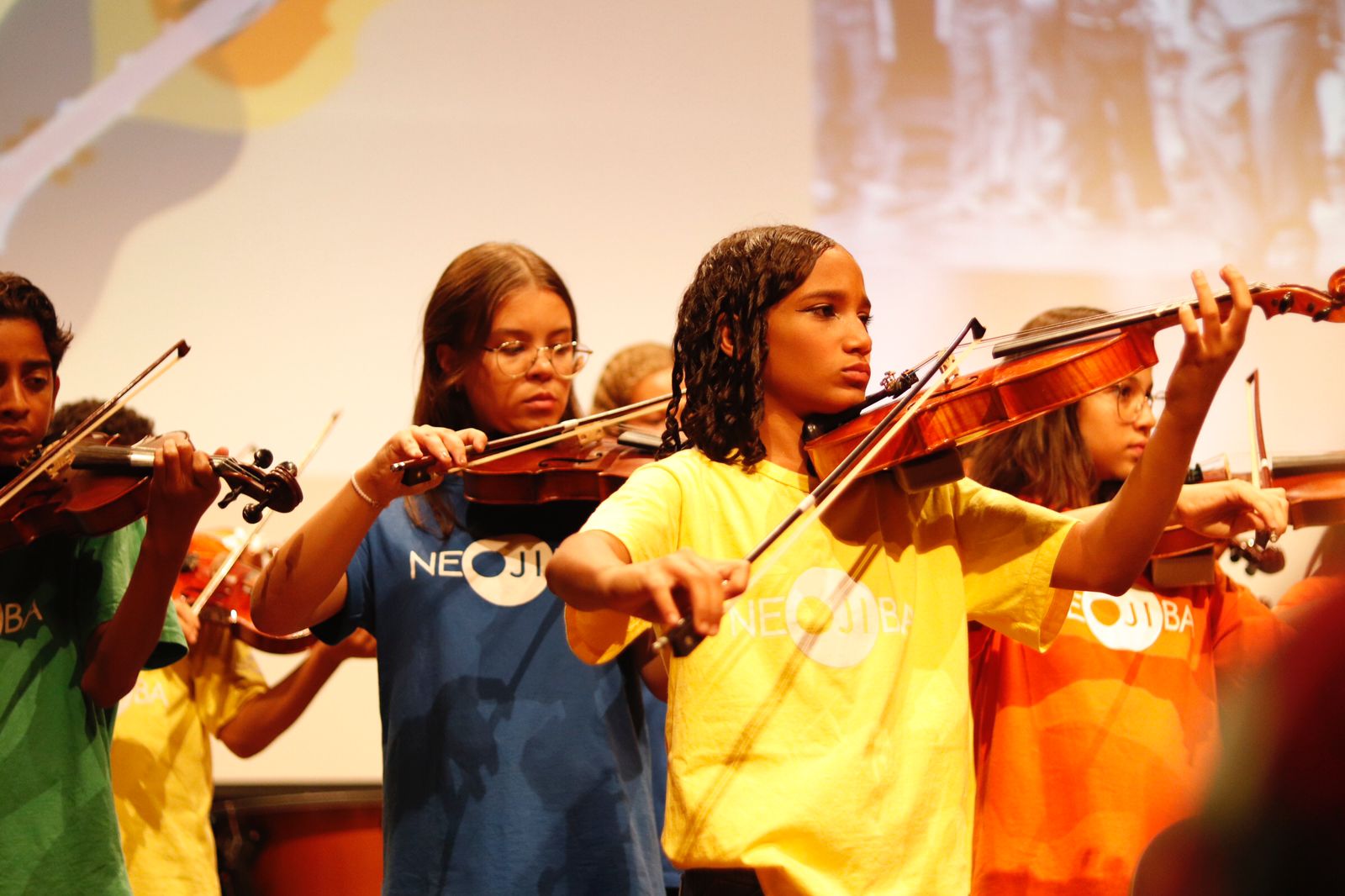 De Mozart a Harry Potter, o repertório tocado pela Orquestra Infantojuvenil de Vitória da Conquista trouxe obras de diferentes compositores e temas populares 4 de novembro de 2023 Victória Meira Amaral, Ayla Lima, Chris Estephane e Letícia MeiraOs 320 lugares do Centro de Cultura Camillo de Jesus Lima, de Vitória da Conquista, foram insuficientes para atender ao público que foi assistir, na última quarta-feira (01/11), o Recital de Madeiras e Cordas do Núcleo Territorial Neojiba (Núcleos Estaduais de Orquestras Juvenis e Infantis da Bahia). No evento, a Orquestra Infantojuvenil da cidade tocou obras de compositores de várias partes do mundo e temas de produções populares.