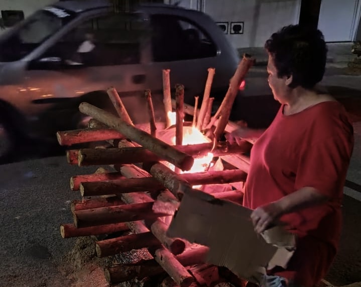 - Moradora acendendo a fogueira.