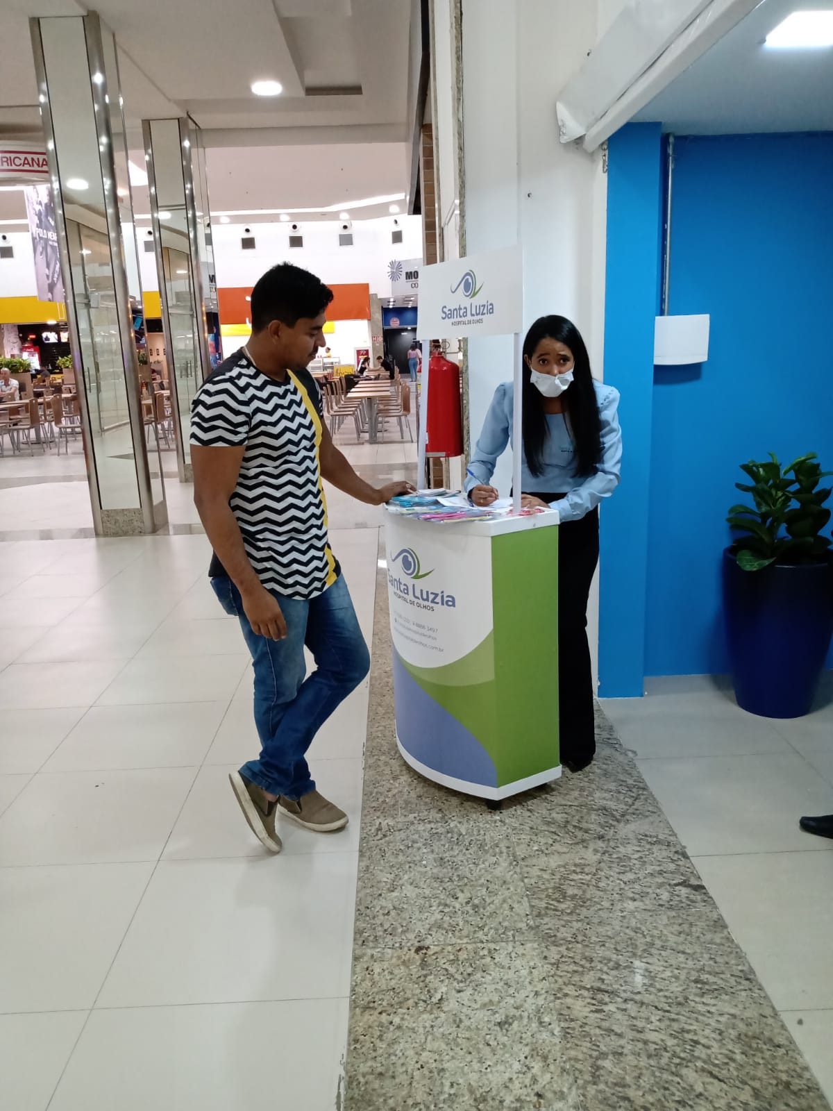 Na loja vazia do Shopping Conquista Sul, além da população levar suas doações de agasalhos e cobertores, foi possível fazer um breve teste de visão com representantes da empresa. Após o teste, os participantes informaram seus dados para que uma consulta fosse marcada no Santa Luzia.