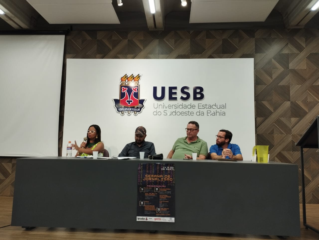 Raquel Lemos e Victória Lôbo, ambas formadas em Jornalismo pela Uesb, participaram como representantes dos profissionais que trabalham com jornalismo independente local. Raquel é co-fundadora do Site Coreto, da cidade de Poções, e Victória é co-fundadora do site Conquista Repórter.