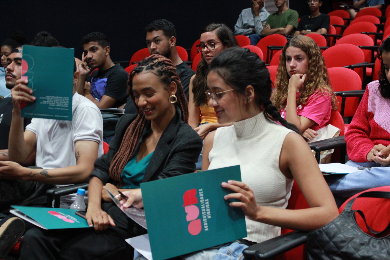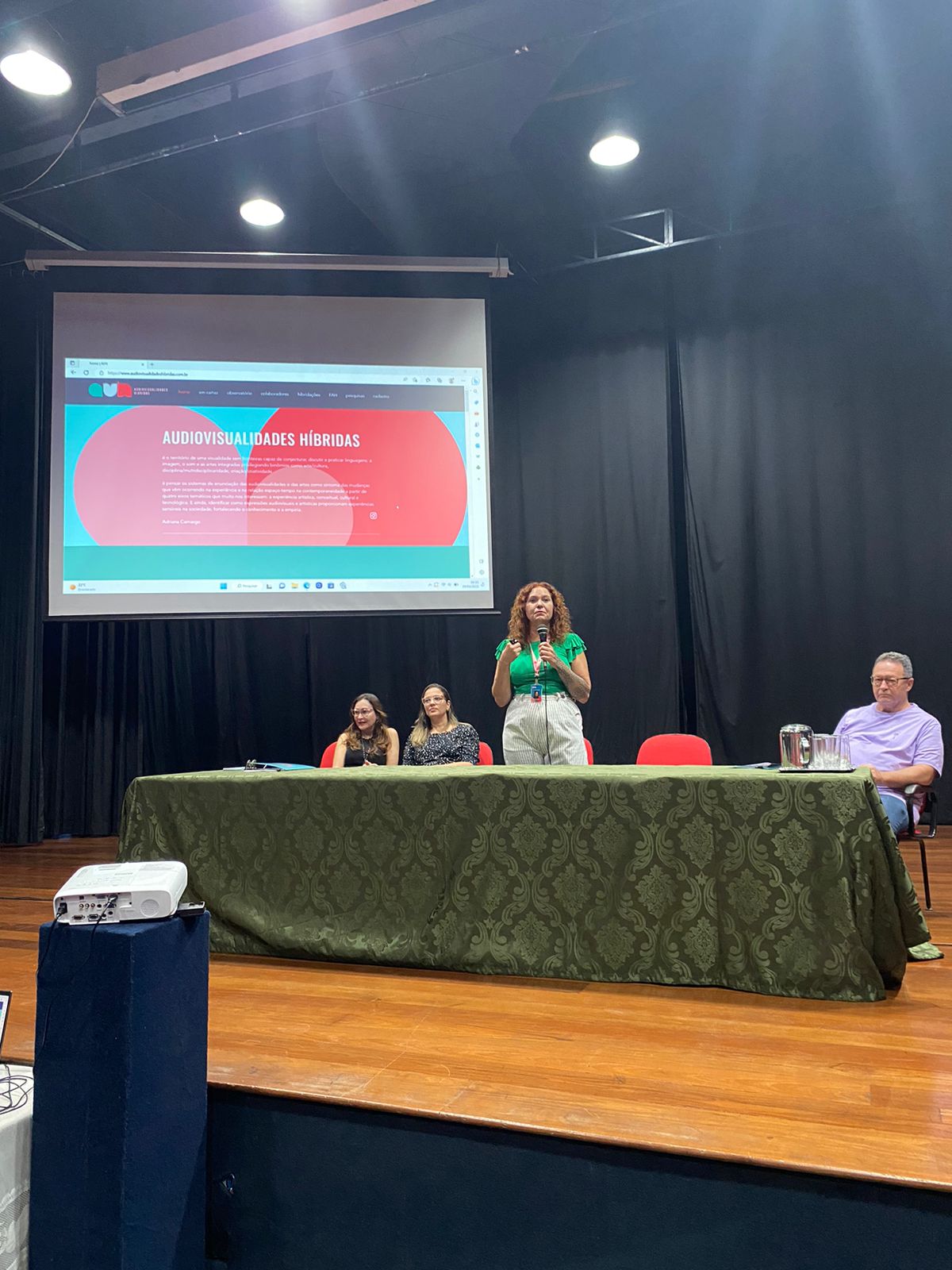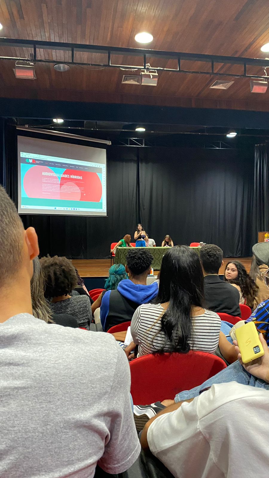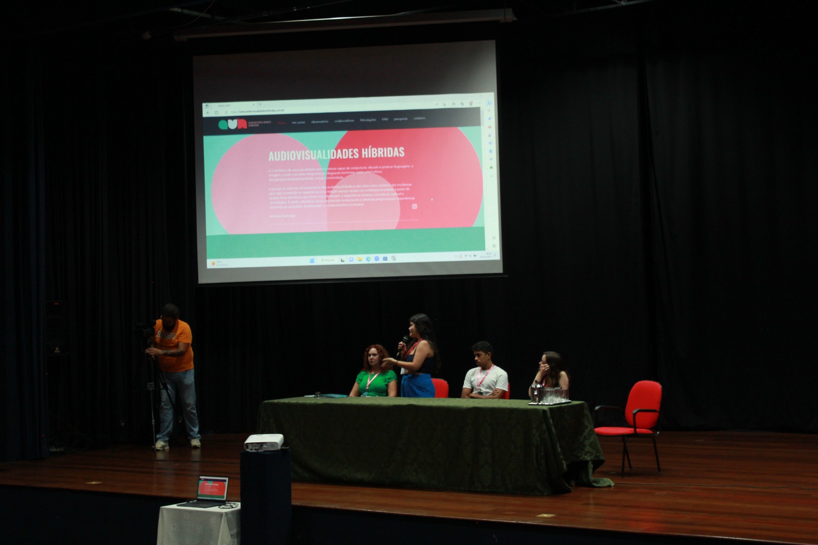 Após a abertura oficial, que contou com a fala das coordenadoras dos Colegiado de Jornalismo, as professoras Carmen Carvalho e Flávia Mota, e da professora Adria, os bolsistas do projeto fizeram relatos das suas vivências no projeto de pesquisa e extensão Audiovisualidades Híbridas e no desenvolvimento do site que recebe o mesmo nome. Para Letícia Meira, que já é fotógrafa, o projeto foi a junção de uma paixão com a possibilidades de novas experiências acadêmicas na universidade. Já Valentina Rosa disse que esse tipo de extensão é importante para que os alunos vejam outras partes do jornalismo, além da formalidade da prática tradicional. Jerônimo Borges destacou o trabalho do grupo e motivou os alunos presentes a fazerem parte dos projetos de extensão da faculdade.