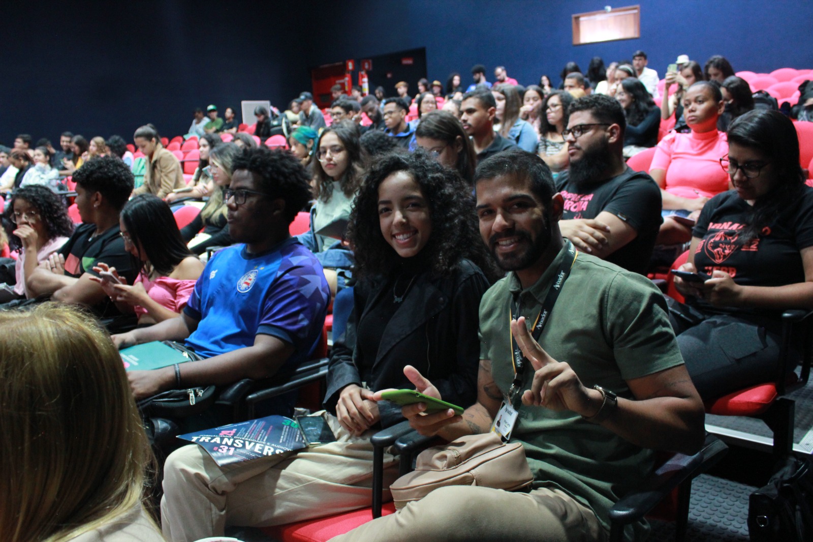 O segundo dia do evento é nesta quinta-feira (30/03), no Teatro Glauber Rocha, na Uesb, a partir das 9h20 29 de março de 2023 Victória Meira AmaralCerca de 150 estudantes e mais os professores do curso de Jornalismo da Uesb estiveram, nesta terça-feira (29/03), no Teatro Glauber Rocha, das 9h às 11h, para a abertura do evento Transversalidades: Jornalismo, Diversidade e Audiovisualidades. O primeiro dia teve o lançamento do site Audiovisualidades Híbridas que faz parte do projeto de pesquisa da professora Adriana Camargo.