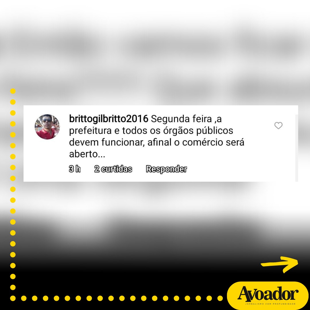 “Segunda feira,a prefeitura e todos os órgãos públicos devem funcionar, afinal o comércio será aberto”, reclamou um internauta na publicação.