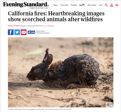 A imagem do coelho com pelos queimados foi feita em um incêndio que ocorreu no estado da California nos Estados Unidos, em 2018. A foto foi tirada na cidade de Simi Valley no condado de Ventura pelo fotojornalista Chris Rusanowsky e publicada em sua conta oficial no Instagram em 13 de novembro de 2018.A região foi devastada pelo incêndio que ficou conhecido como RockyPeakFire, em referência a região montanhosa atingida pelo foto. O período foi marcado pelos maiores e mais devastadores incêndios registrados no estado americano.