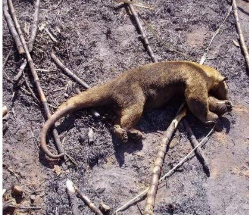 E por último: a imagem de um tamanduá morto foi feita em Presidente Venceslau, também no interior de São Paulo, e está relacionada a uma notícia do jornal Integração – Diário Regional publicada em 20 de maio em 2011 sobre uma queimada ilegal em uma fazenda.